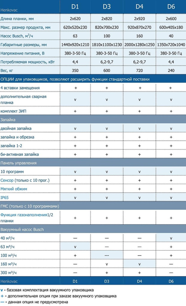 Серия двухкамерных вакуумных упаковщиков Henkovac D включает в себя 4 модели: D1,D3,D4,D6.